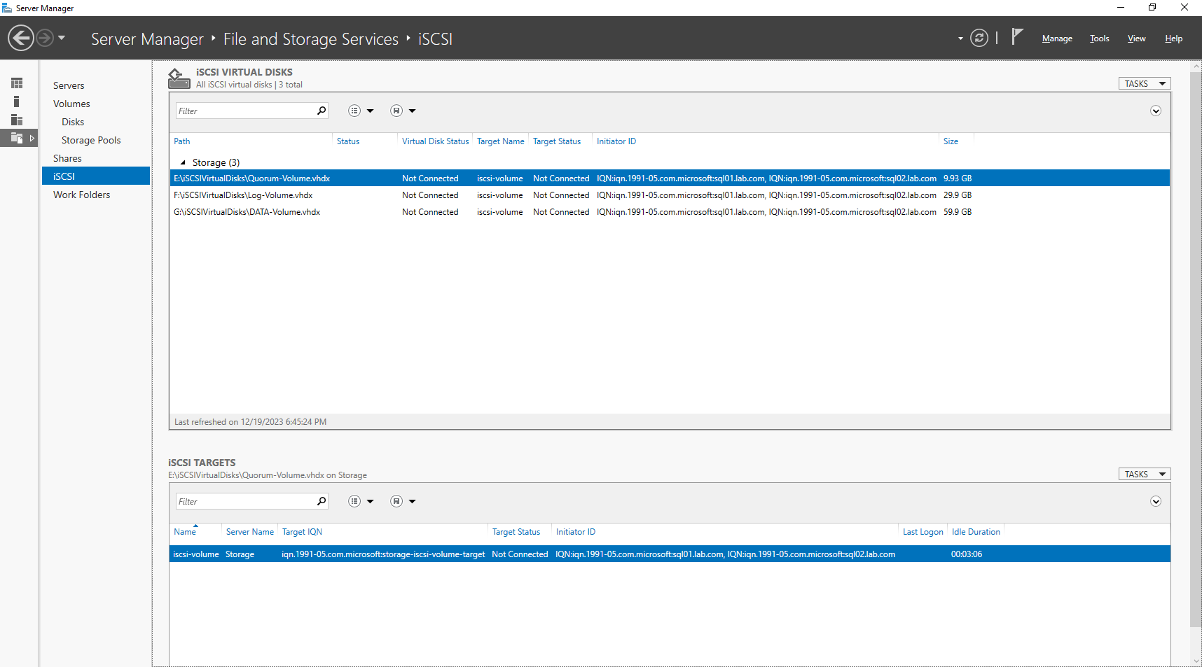 SQL Server 에서 iSCSI 볼륨 연결