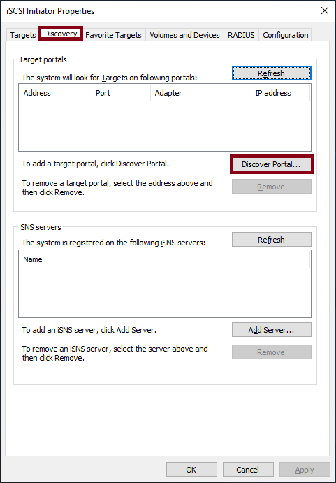 iSCSI 구성 메뉴에 접근해주세요