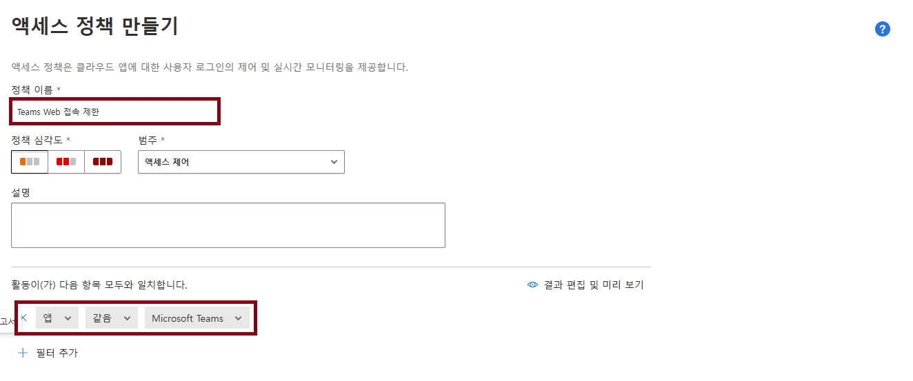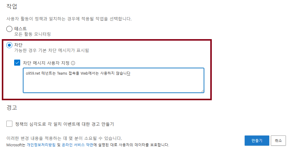 WEB에서 Teams 접속 제한 정책을 설정해보는걸 테스트 해보려고해요