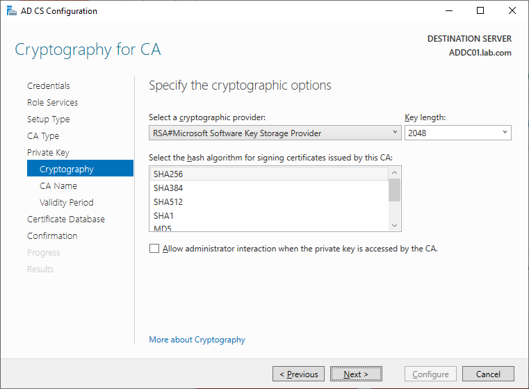 설치 완료 후 설정 진행을 위해 Configure ADCS 클릭!