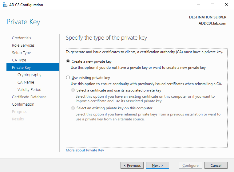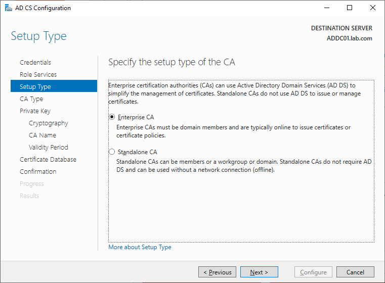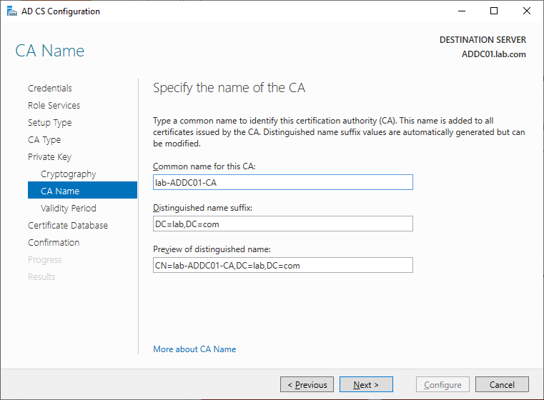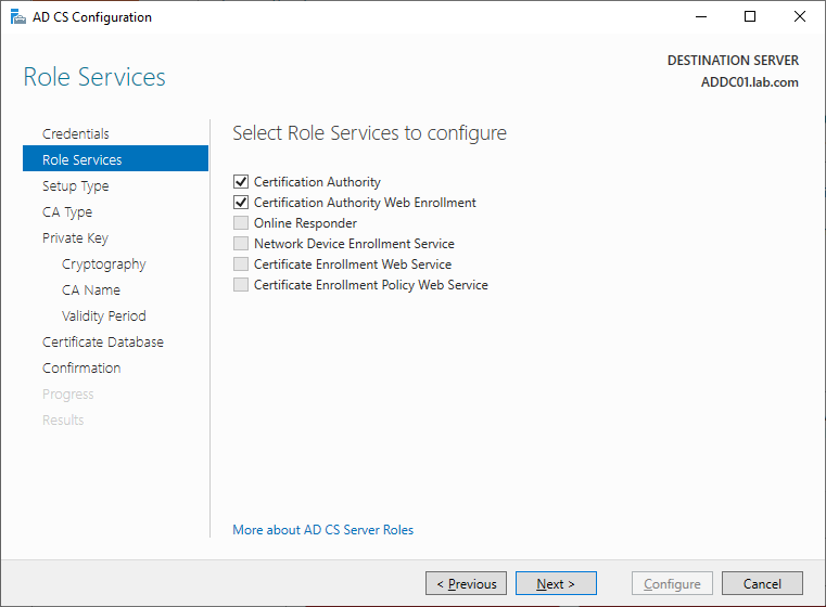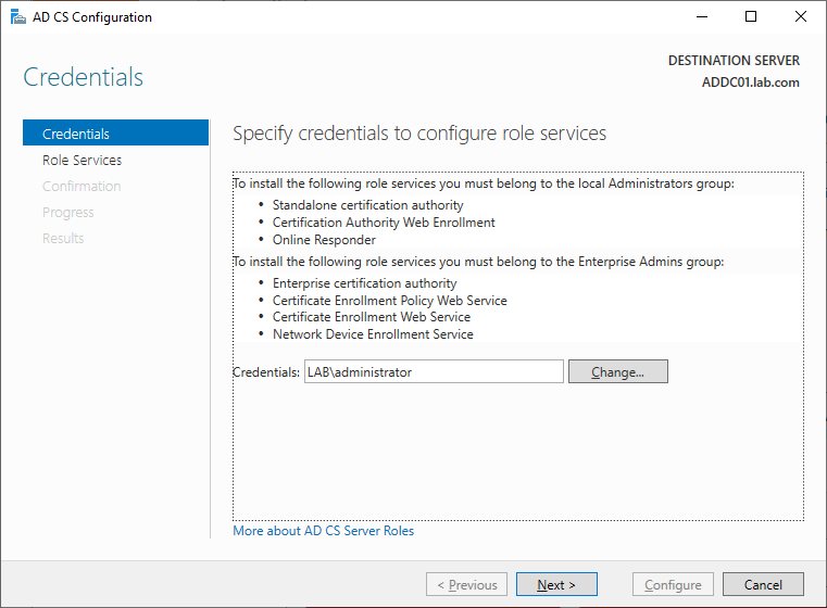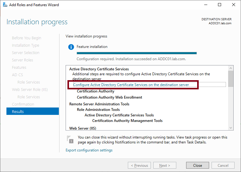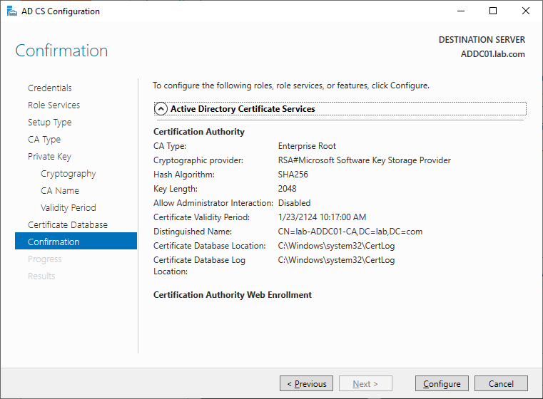 설치 완료 후 설정 진행을 위해 Configure ADCS 클릭!