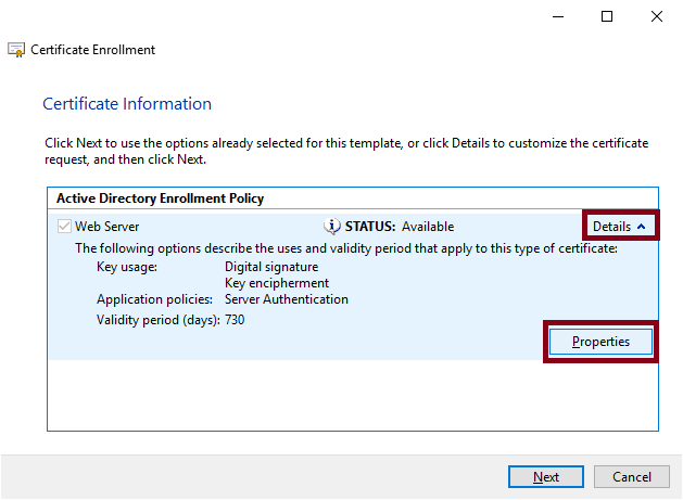 Certificate Template를 Web Server로 변경하고 Submit 클릭