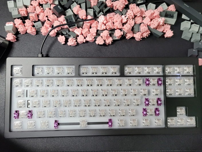 기존에 체결된 키캡과 스위치를 다 제거 합니다