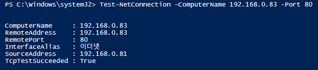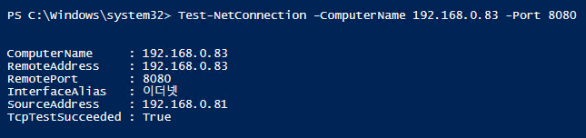 위 방법을 응용해서 특정 대역대의 방화벽 포트 확인과 같은 설정 체크가 가능해요
