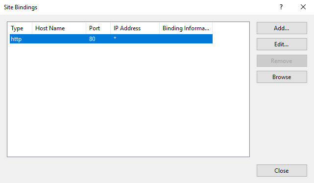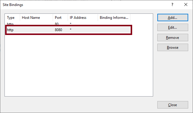 사이트 바인딩에서 ADD를 클릭하여 포트 테스트를 위해 8080 포트를 할당해줄꺼에요