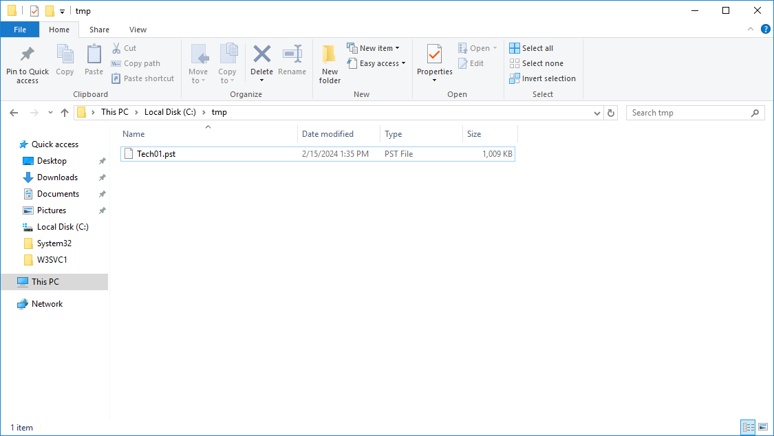 PST 파일이 생성 되었어요