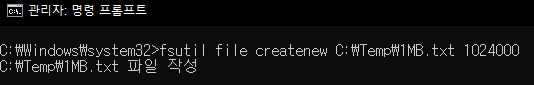 fsutil이라는 명령어를 사용해서 Dummy 파일을 생성할 수 있어요