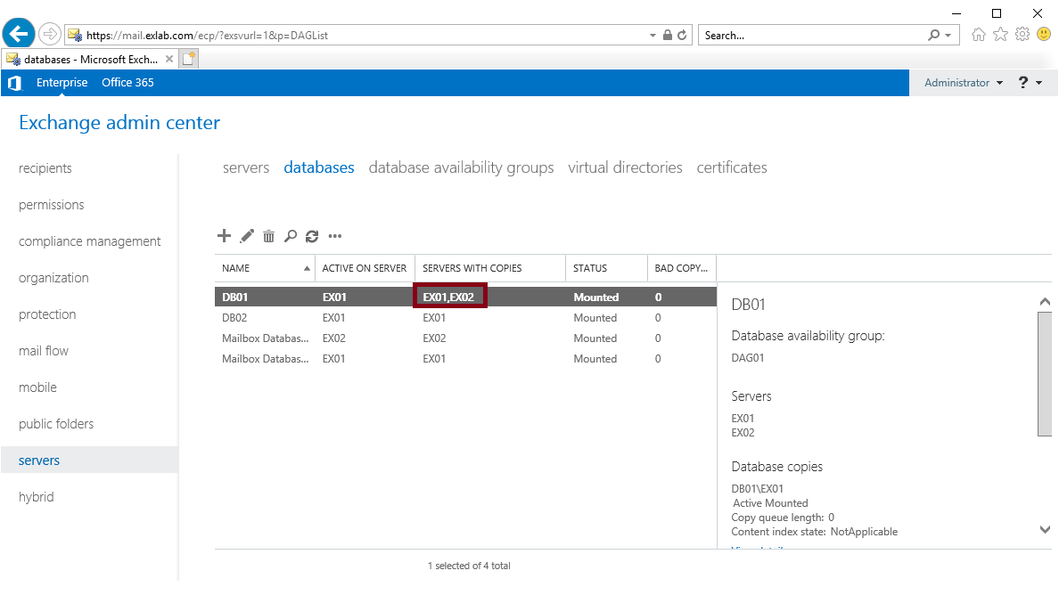 복사본이 EX01, EX02 서버 2개에 생겼어요!