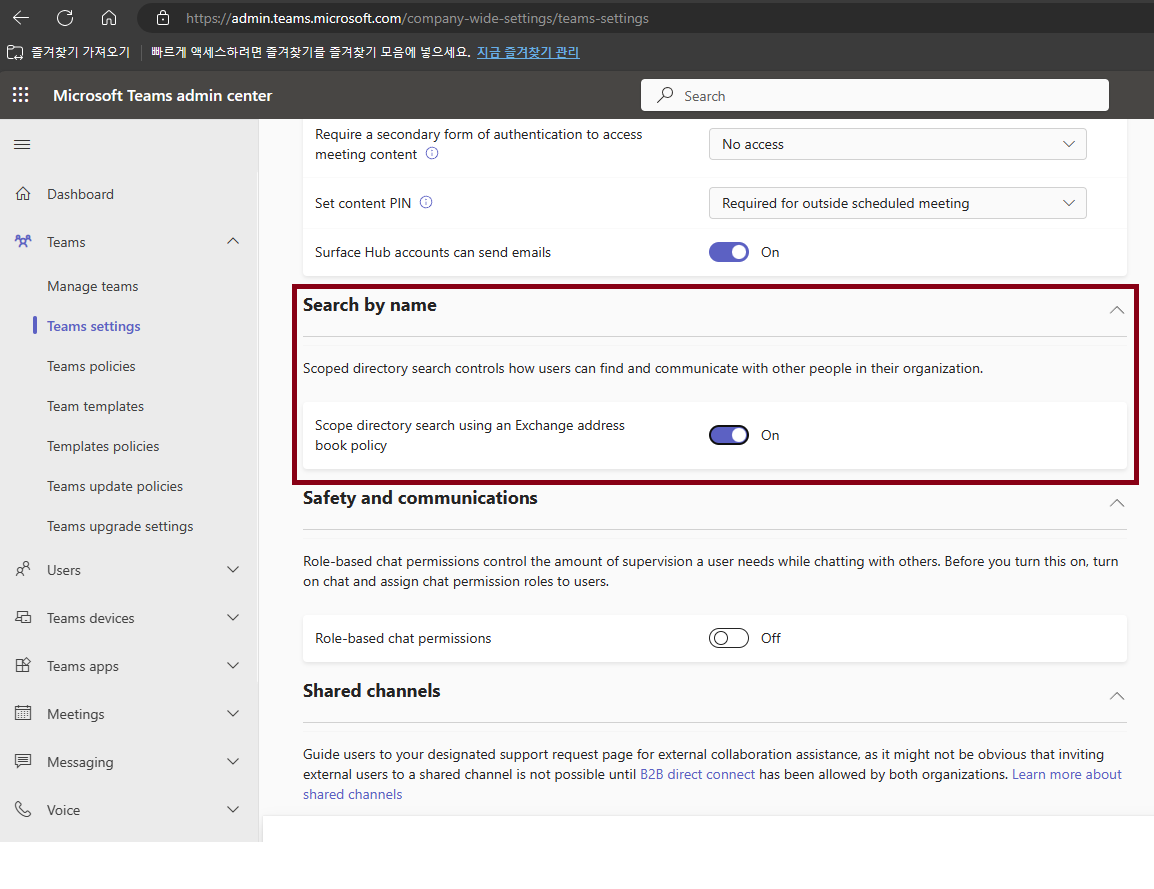 Microsoft Teams 관리센터에서 아래 설정을 활성화 해주세요