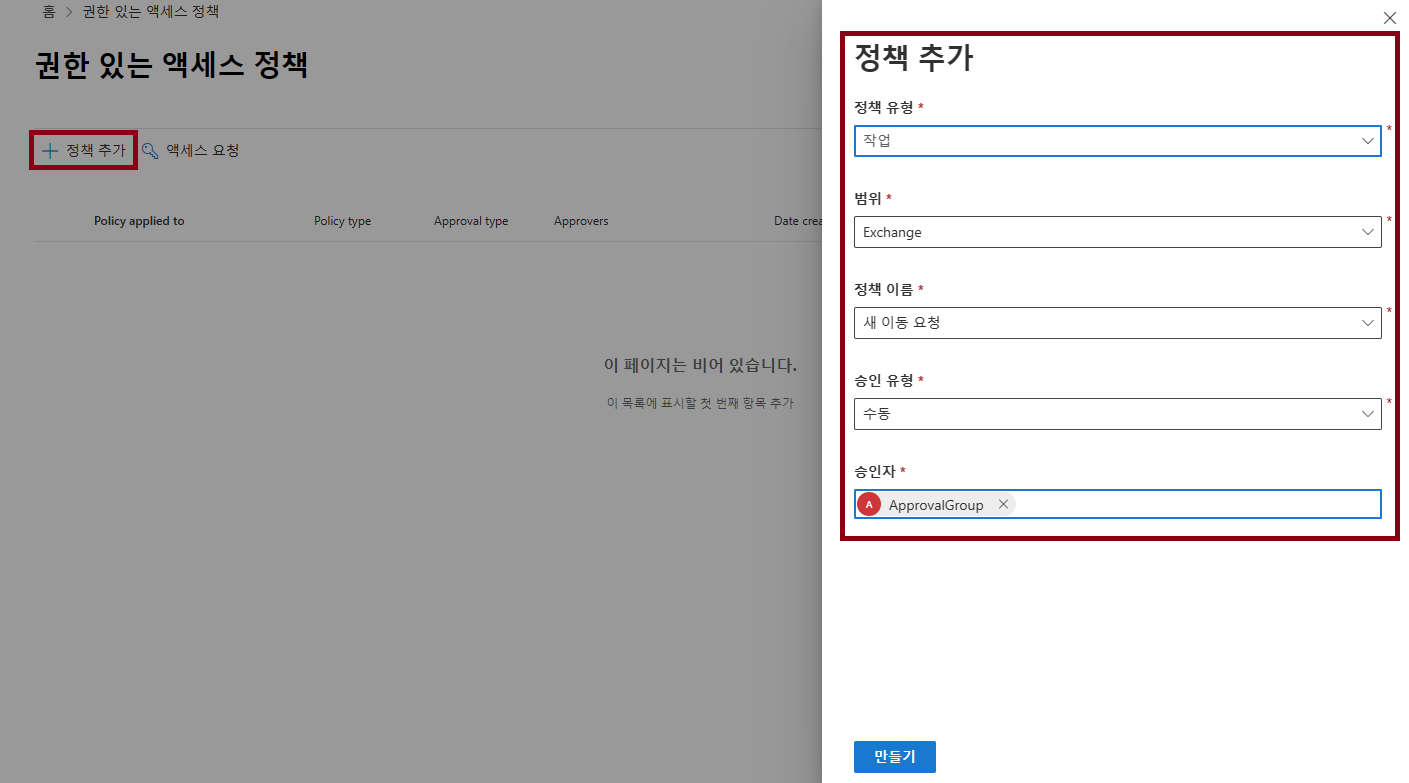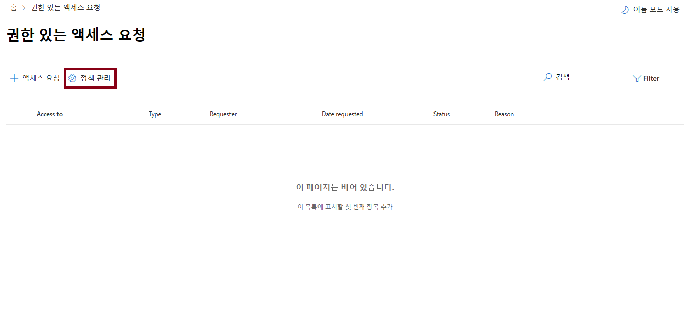 [정책 만들기 및 요청 관리] 클릭