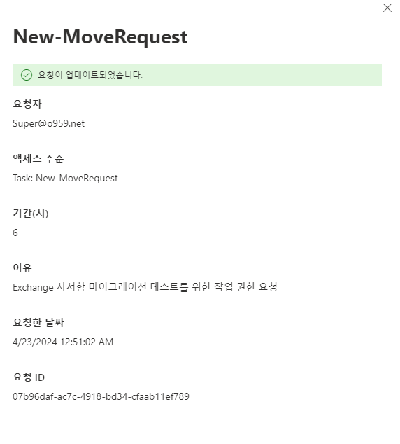 권한 승인 이후 메일박스 마이그레이션이 정상적으로 되는게 확인 되네요