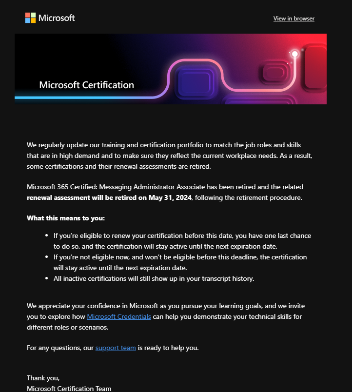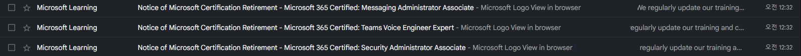 자격 인증 만료(비활성화) 안내 (MS-203, MS-720, MS-500)