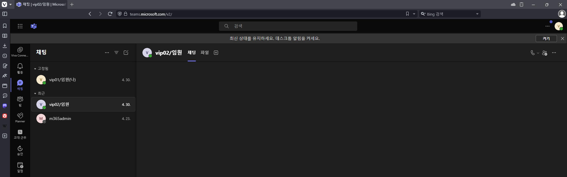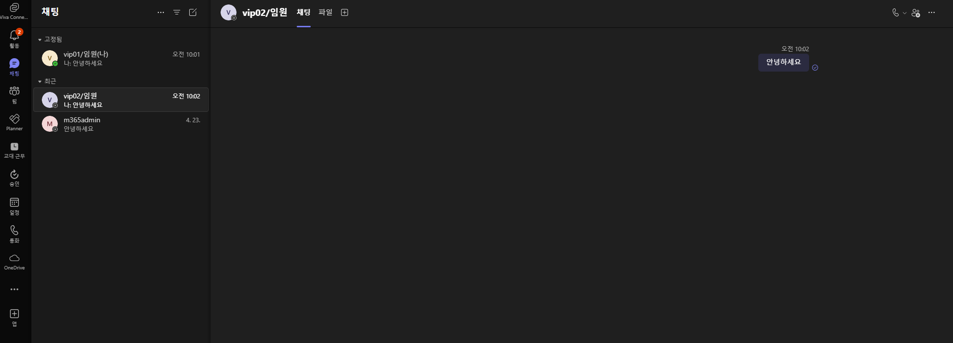 우선 제 테스트 환경의 Teams 메시지/첨부파일 내역은 아래와 같습니다.