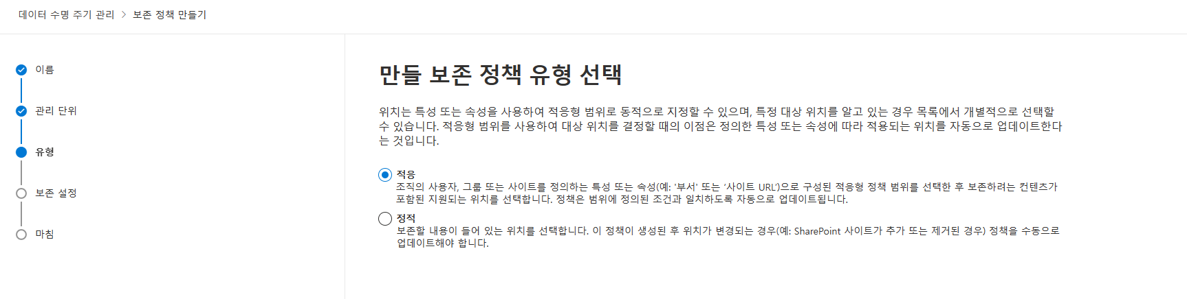 보존 정책 유형 [적응]