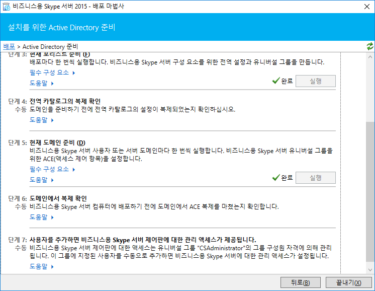 실행을 클릭하여 Active Directory 준비 항목을 완료 시켜주시고