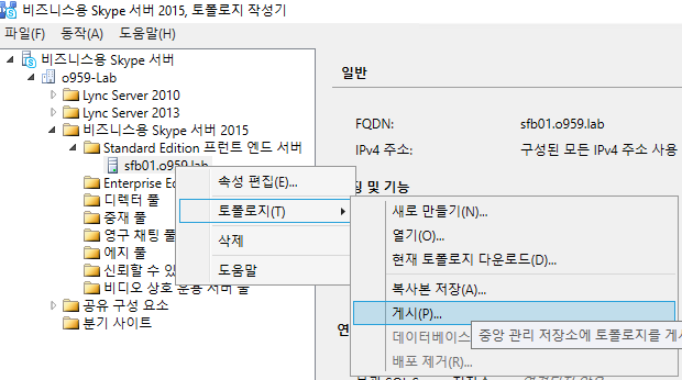 토폴로지 게시를 위해 생성한 풀 우클릭 [토폴로지] - [게시] 클릭해주세요