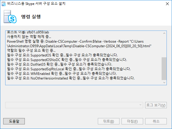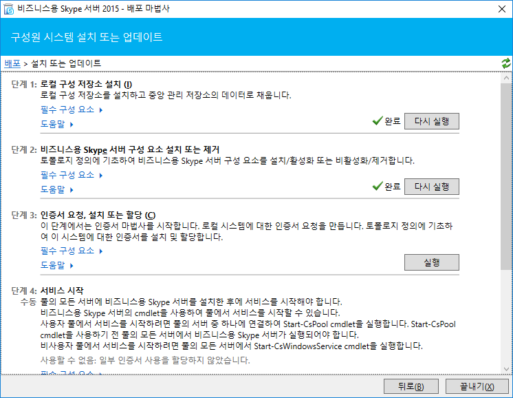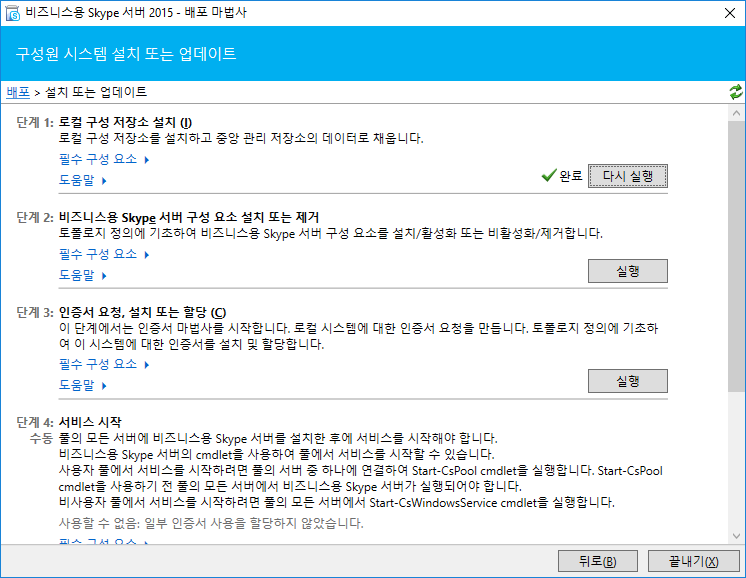 2단계 비즈니스용 Skype 서버 구성 요소 설치 또는 제거를 실행해주세요