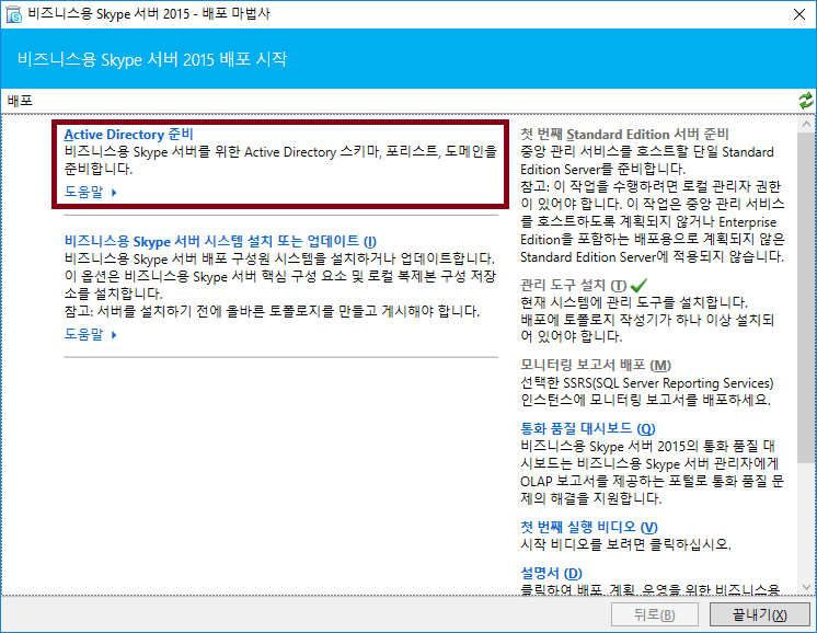 배포마법사 - 비즈니스용 Skype 서버 시스템 설치 또는 업데이트