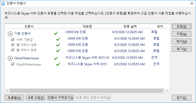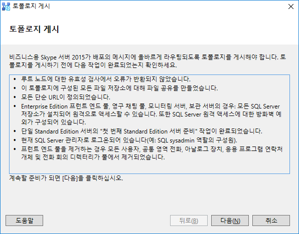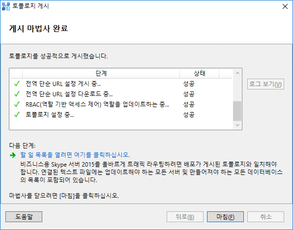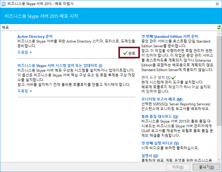 Skype For Business 서버 설치 시 해당 모양은 설치에 특이사항이 없다는 표시에요