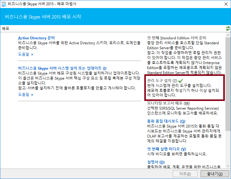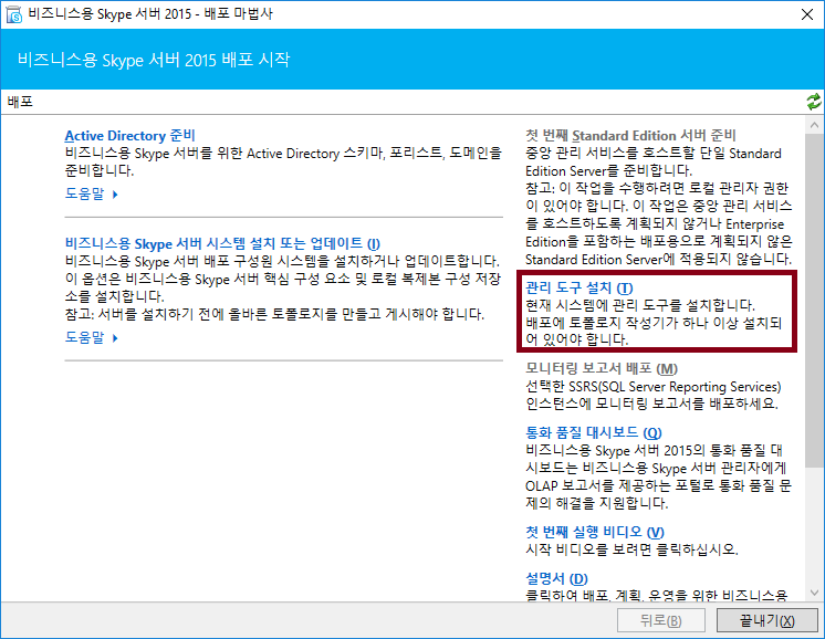 첫번째로 "관리 도구 설치"를 진행해주세요