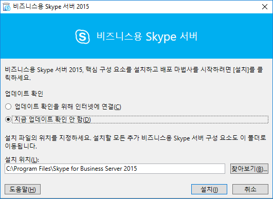 비즈니스용 Skype 서버 시스템 설치 또는 업데이트를 클릭해주세요