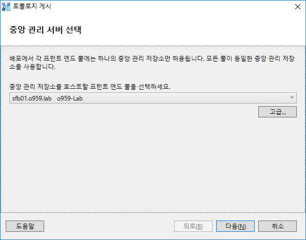 이후 중앙 관리 서버를 Front End로 지정하고 확인을 클릭해주세요
