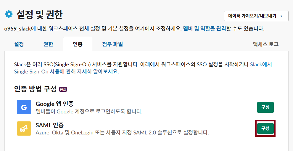 이어서 Slack SSO 구성을 진행해보려고 합니다