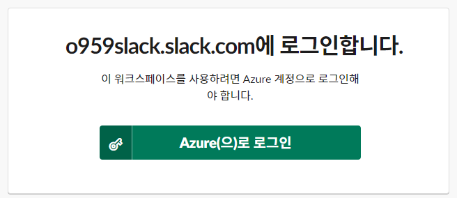 Azure로 로그인을 클릭해주시고 Slack Applicaiton의 구성원인 Entra ID 계정을 입력해주세요