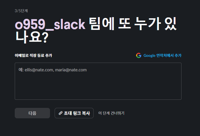 초대할 계정이 없어서 전 이 단계 건너뛰기를 클릭했어요