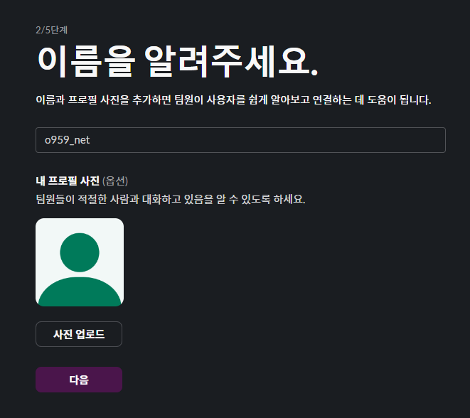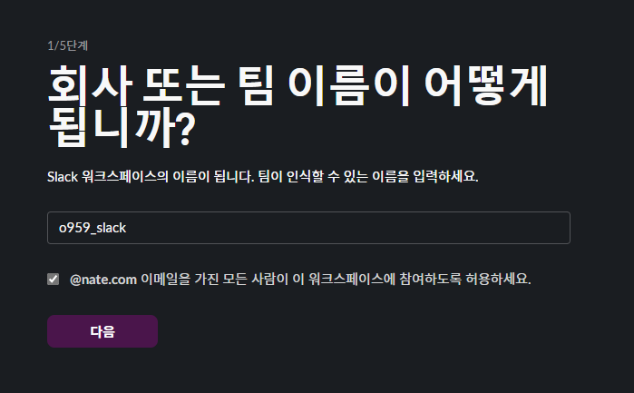추후 설정이 마무리되면 해당 계정으로 Slack을 로그인 할 수 있습니다