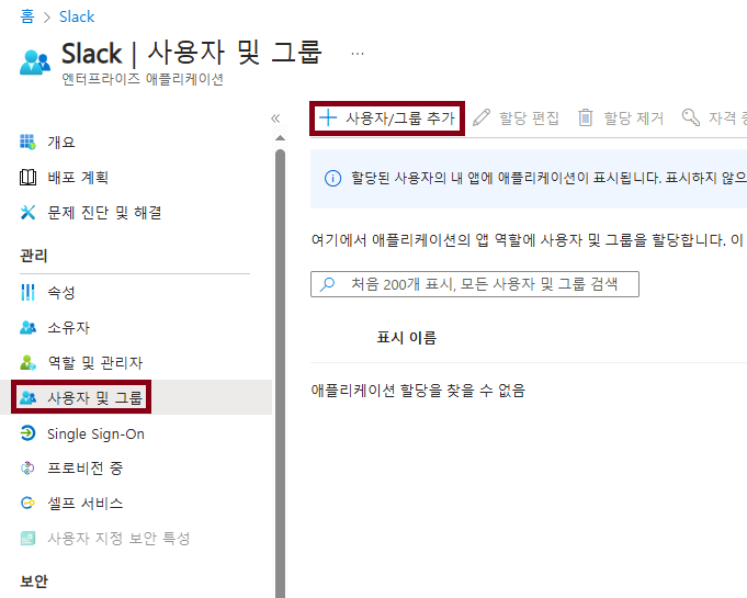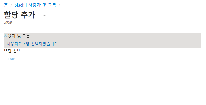 Slack 어플리케이션을 Entra ID 계정으로 로그인 할 수 있는 계정을 할당해주세요