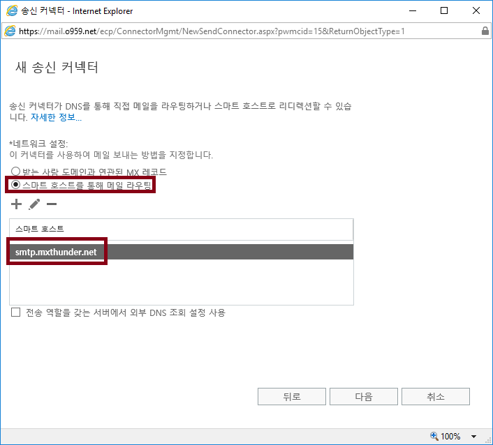 스마트 호스트를 통해 메일 라우팅 옵션을 선택해주시고