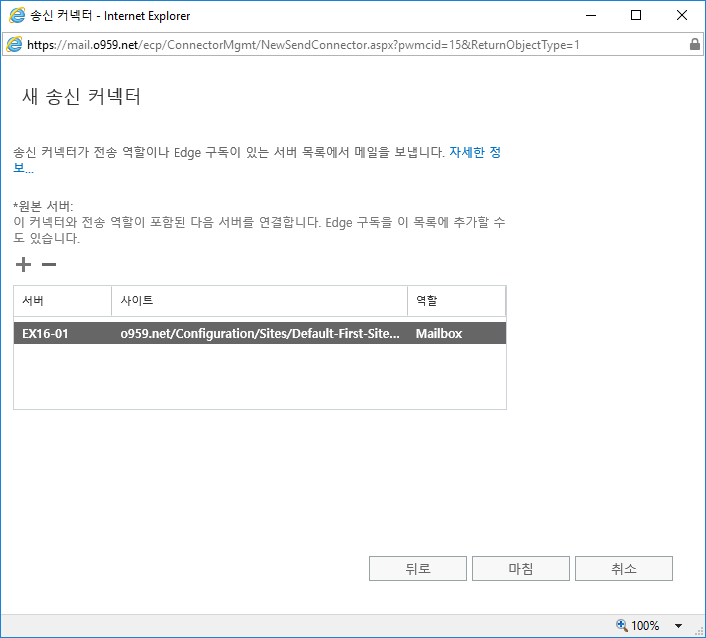 송신 커넥터 설정을 완료 했어요
