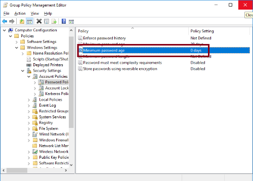 최소 패스워드 사용 기간을 없애버렸어요