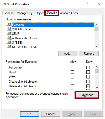 Security 탭에서 Advanced를 클릭해주세요