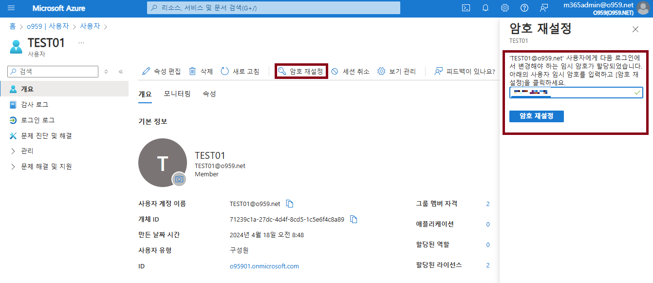 여담이지만, M365 관리센터에서 비밀번호 초기화는 SSPR 기능을 이용하지 않아