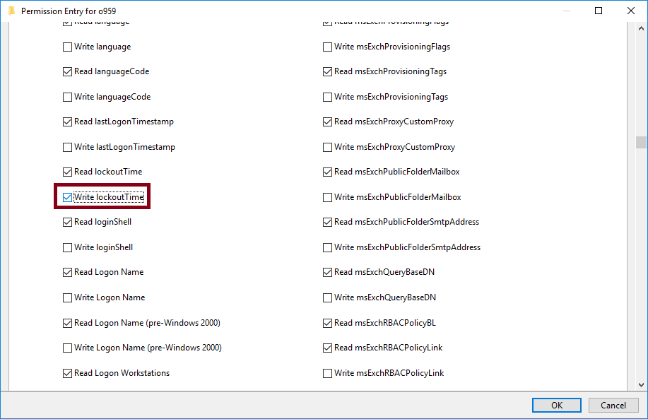 Write permissions on lockoutTime