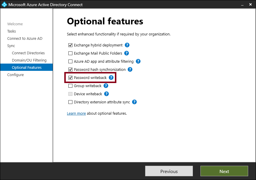 Microsoft Entra Connect Password Writeback 사용 설정