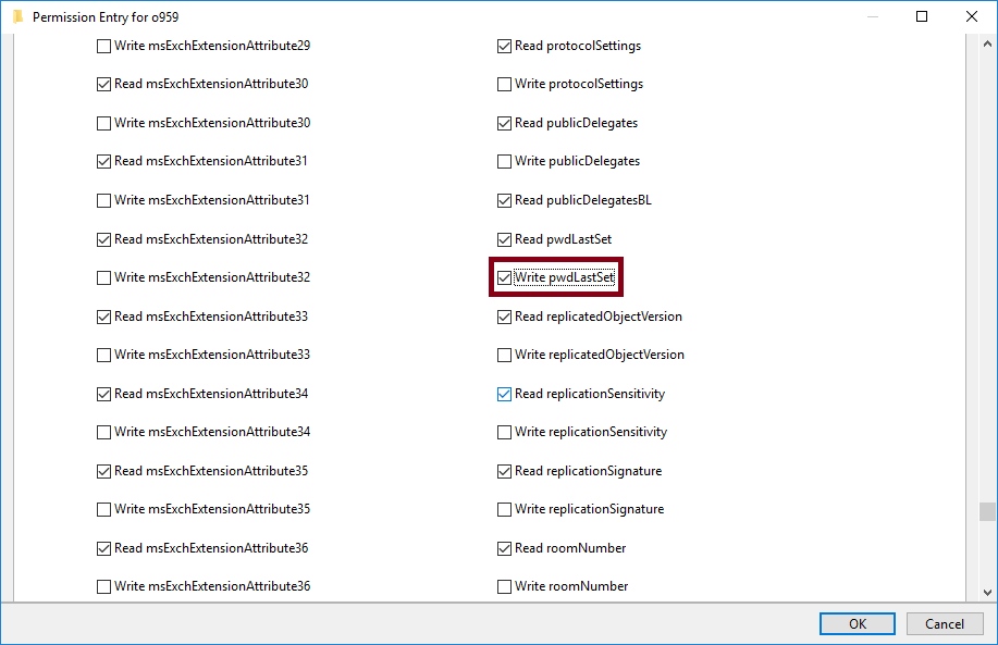 Write permissions on pwdLastSet