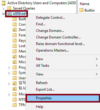 도메인 이름을 우 클릭하고 Properties를 클릭해주세요