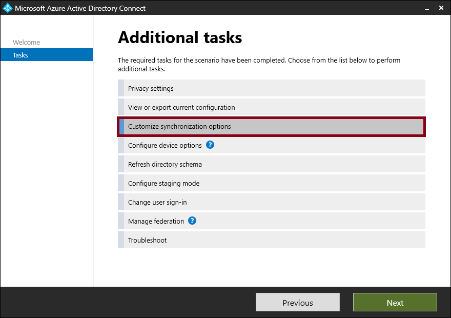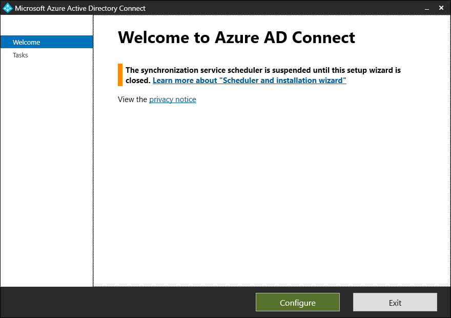 Microsoft Entra Connect 서버에 로그인하고 Microsoft Entra Connect 구성 마법사를 시작해주세요