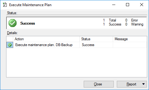 유지 관리 계획이 실행 되다가 정상적으로 실행에 성공합니다