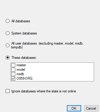 전 O959-ORG 라는 Database 만 백업 예정이라 해당 Database만 선택 했어요