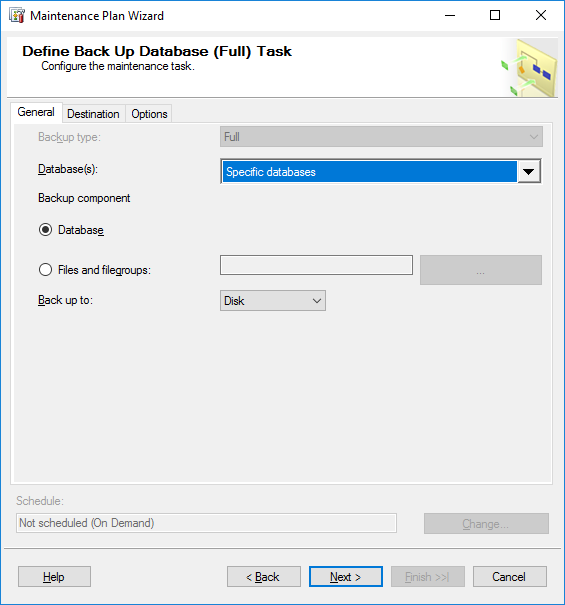 제가 설정하려고 하는 데이터 베이스 백업 (Back up Database)와
