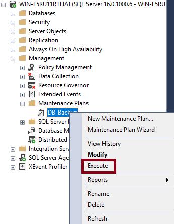 생성한 유지 관리 계획을 우클릭 후 실행을 클릭해주세요