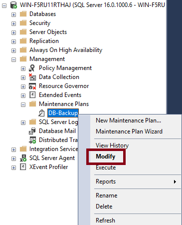 생성한 유지관리 계획에 대하여 우클릭 후 수정을 클릭해주세요