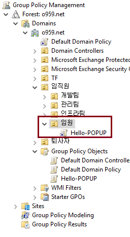 그룹정책 관리 콘솔에서 Hello-POPUP이라는 그룹정책 개체를 생성해주세요