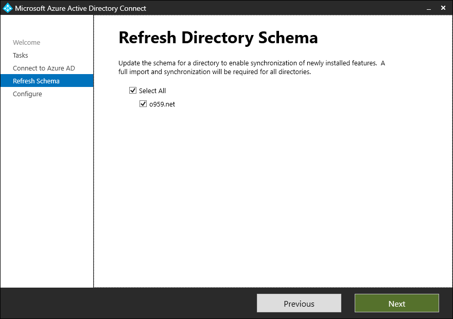 AADC를 실행해주세요 그리고 Refresh Directory Schema를 클릭해 진행해줍니다