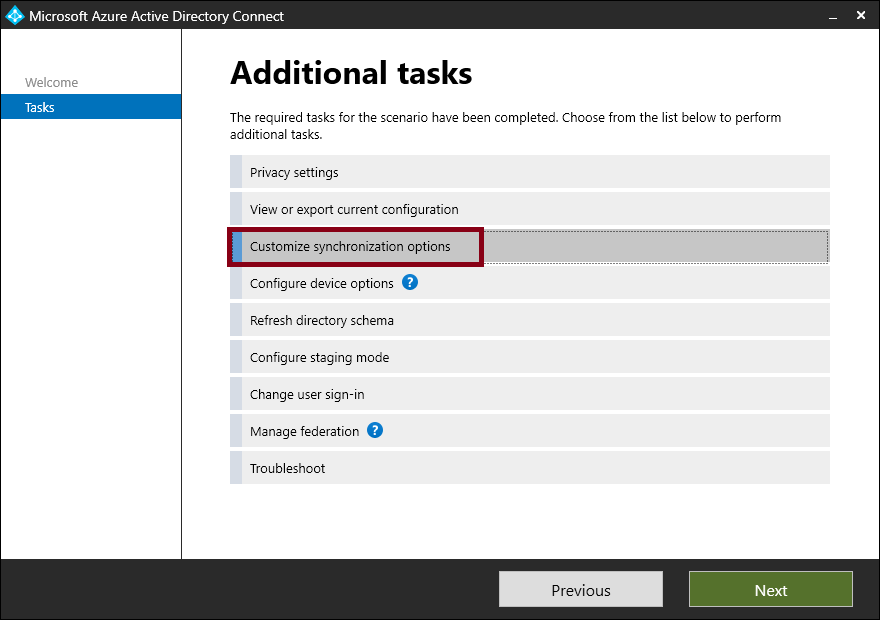 Directory Extension Attribute Sync를 클릭해주세요 새로운 Attribute를 Sync하기 위한 옵션이에요