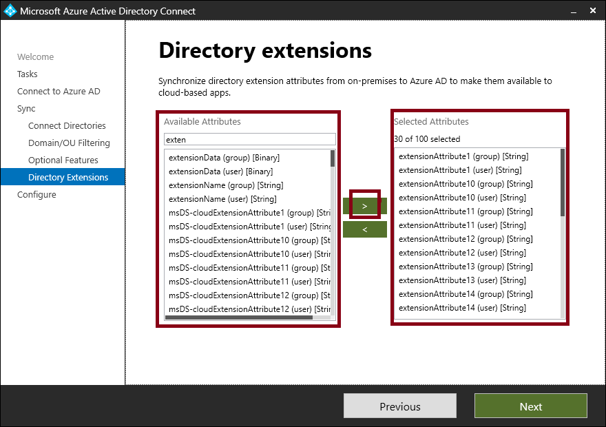Active Directory의 속성 중 Extension Attribute (Exchange에서 사용)을 EntraID로 동기화하면